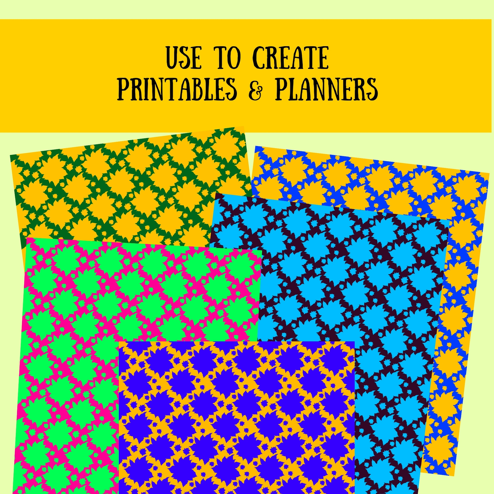 These digital papers are 8.5 x 11 and 300dpi. They are made for creators to speed up designing process. You can easily use them for creating printables, planners, etc.